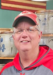 Landscaper Cardie Carnes’ grandparents worked at Western Stoneware in Monmouth, Illinois, so he was always aware of the locally made pottery. His passion for stoneware truly began later in life, after his kids were in college and he found more time for himself. While doing a landscape project at the Stoneware Museum, Ray and Cindy Brinkmann invited him inside for a short tour—and what he saw changed everything. Surrounded by hundreds of pieces of stoneware, Cardie’s interest turned into a full-fledged pursuit. Since then, he has traveled across more than fifteen states, amassing a collection of several hundred pieces. What began as curiosity about his grandparents’ work has become a lifelong passion, fueled by the thrill of the hunt, the beauty of the craft, and the friendships he’s formed along the way. Today, Cardie is proud to serve as a board member of the Stoneware Museum, helping to preserve and share the legacy that first inspired him.