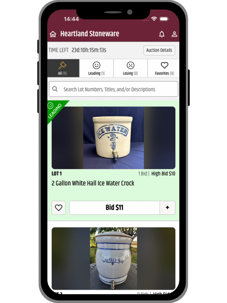 Heartland Stoneware makes it easy to bid, buy, and sell. Download our app to access trusted auctions and timeless pieces of Midwestern history. Bid anytime from anywhere.
